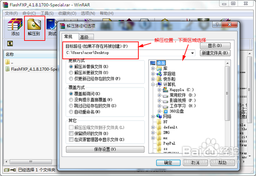 打开或右键解压FlashFXP_4.1.8.1700-Special.rar压缩包到你想存放的位置。