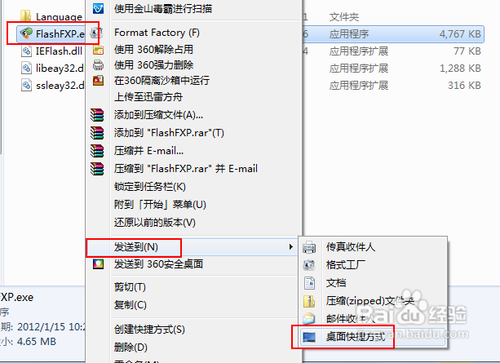 打开解压出的FlashFXP_4.1.8.1700-Special文件夹,右键FlashFXP.exe文件-发送到-桌面快捷方式,创建桌面快捷方式便于使用。
