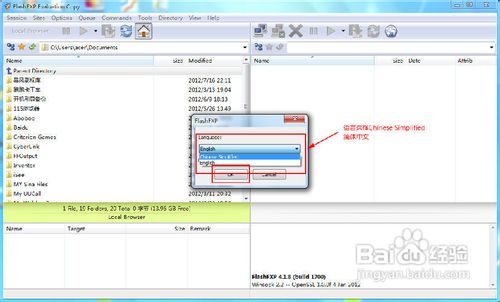 双击打开FlashFXP,在弹出的语言选择框中选择Chinese Simplified(简体中文),然后点OK,在跳出的窗口中点确定确定。