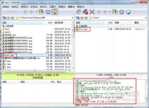 以下是本人用FTP上传test.jpg文件至本人的FTP服务器的示例。