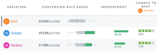 所有的这些都由分组测试(也叫A/B测试)得出的,并不是我个人观点。使用类似VWO或Optimizely这类分组测试工具,能够检测出哪种字体最适合你的读者,哪种方案更合适。