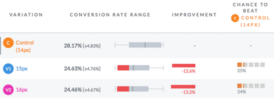 这次试验让我知道,不论分组测试哪种试验,结果都会告诉你:对某些人奏效的事情未必对其他人奏效。对我们的博客使用的字体,或是发表的文章来说,14px的字体可能是个很好的选择。