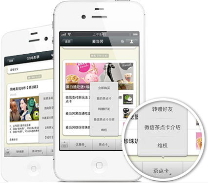 通过在微信内植入会员卡功能,基于全国5亿微信用户,帮助企业建立集品牌推广、会员管理、营销活动、统计报表于一体的微信会员管理平台。清晰记录企业用户的消费行为并进行数据分析;还可根据用户特征进行精细分类,从而实现各种模式的精准营销。