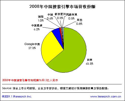 2008年搜索市场规模达50.2亿元,年增长73.1%,未来发展趋稳定