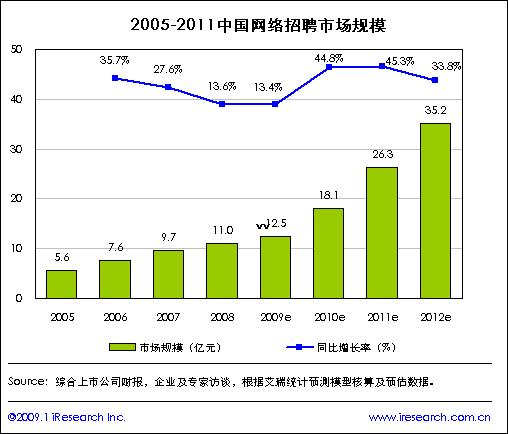 ·受经济危机影响,08年网络招聘市场增速放缓,09年上半年为低谷