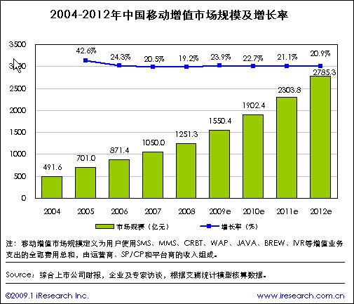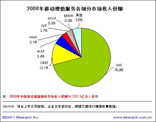 08年移动增值服务市场规模达到1251.3亿元,同比增长19.2%