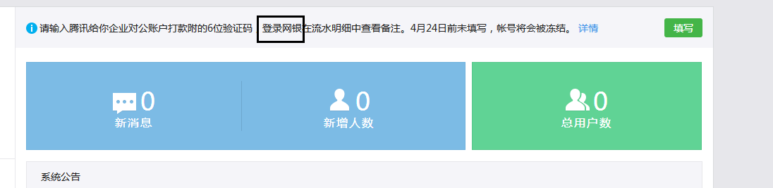 2、重新填写对公帐号信息,时间将会重新计算,具体时间首页会提示,请在规定时间内填写验证。
